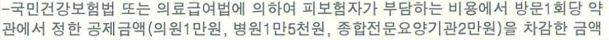 예를들어 몸이 아파서 진료와 치료를 받고 3만원이 나왔습니다. 의원은 1만원 제외한 2만원이 지급되고 병원은 1만 5천원을 제외한 1만5천원이 지급 되고 상급종합병원은 1만원을 지급 받게되겠죠.